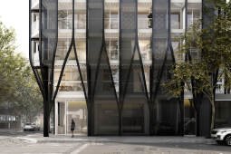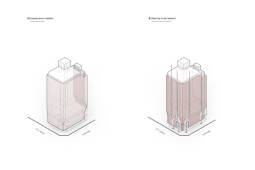 Se propone una combinación estructural simbiótica entre hormigón tradicional y piezas metálicas prefabricadas, aprovechando las ventajas de cada sistema. Los bajos espesores de las losas casetonadas de hormigón, se utilizan en el subsuelo y en la zona de estacionamiento, aprovechando la altura de 4m. en la planta baja para generar un entrepiso de cocheras. La estructura metálica por su parte, se utiliza debido a su alta performance, tanto a niveles de rendimiento estructural como a la velocidad de ensamblado de la misma. Se utiliza una estrategia de ramilletes, una serie de elementos ramificados que resuelven transferencias estructurales para liberar el contacto con el suelo de modo eficiente.